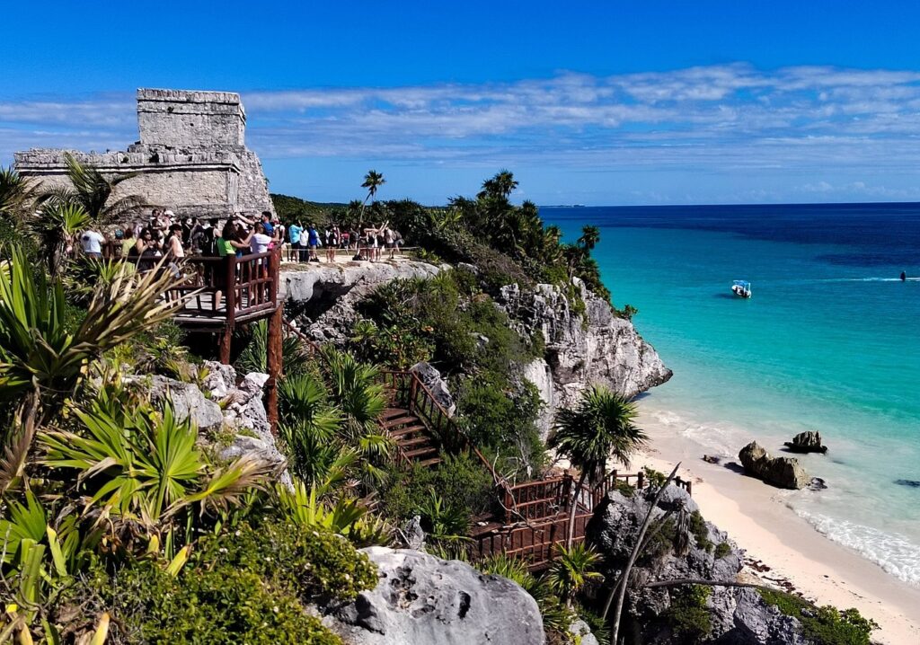 カリブ海を見下ろす絶壁に建ち、ターコイズブルーのカリブ海、白い砂浜、遺跡の3色のコントラクトがとても美しいフォトジェニックな絶崖のトゥルム遺跡。スペイン人が最初に目にしたマヤの都市です。