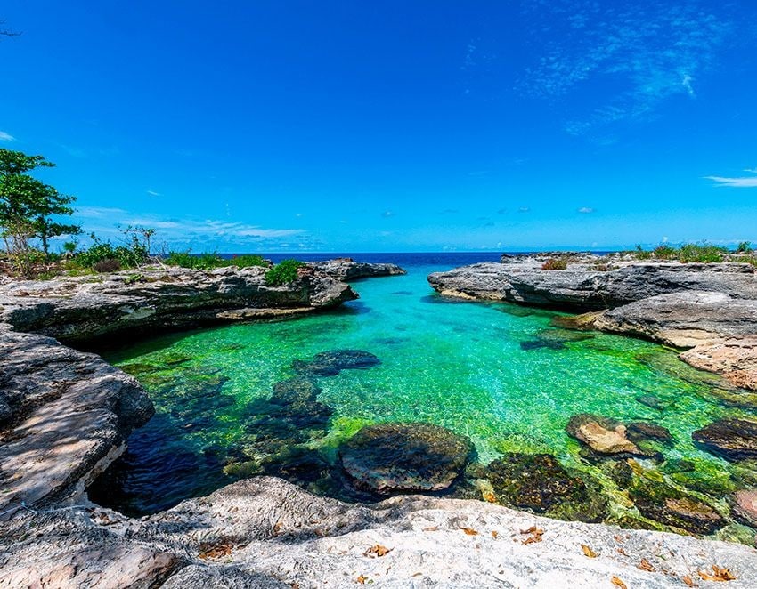 カリブ海の自然美を満喫するスポットとしては、プンタ・フランシス海洋国立公園が最高である。海の透明度は20~40mで、水温は年間平均25℃です。青年の島から豪華船で90分で到着します。