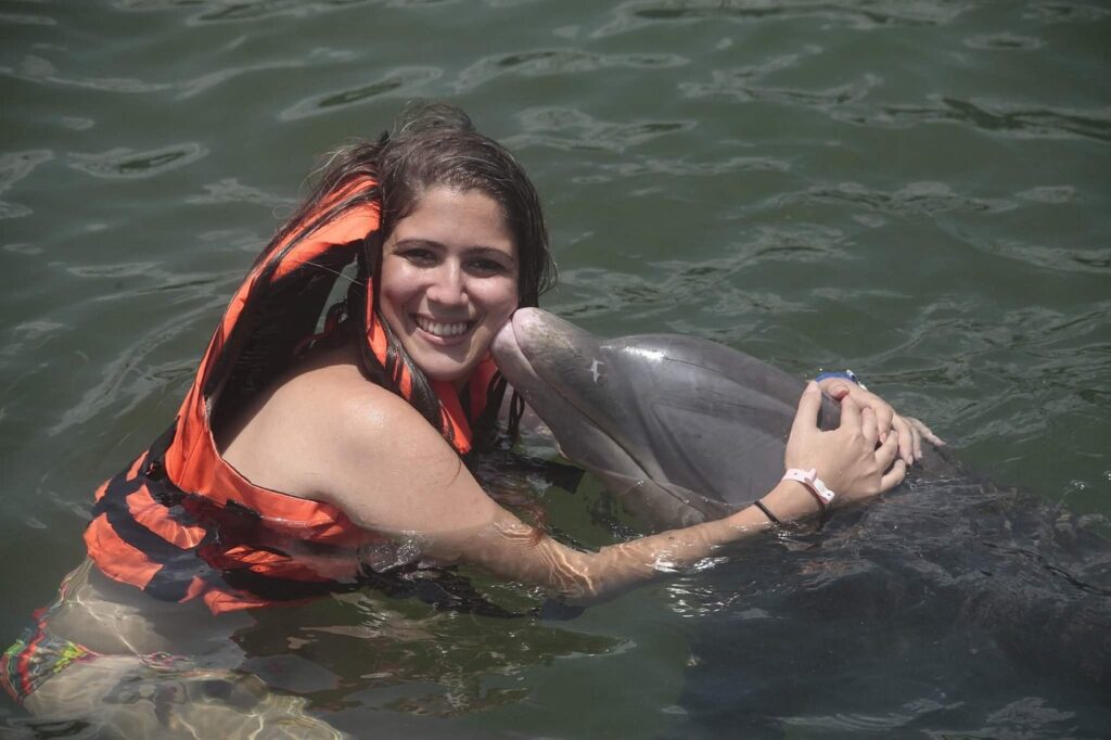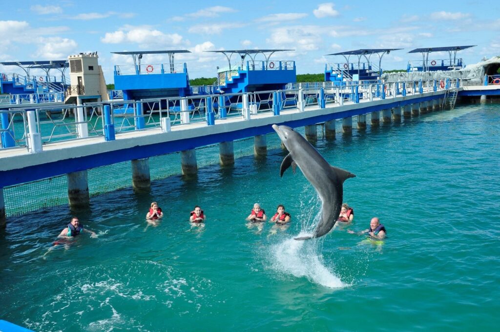 イルカ園(デルフィナリオ)では、飼いならされたイルカたちと泳いだり、触れて遊んだりと言った体験ができます。