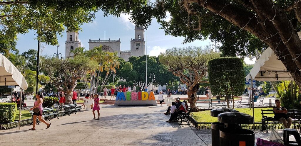 メリダの「プラザ・グランデ」は、街の中心となる歴史的なメイン広場です。周辺には、アメリカ大陸で最古級のメリダ大聖堂や市庁舎が立ち並び、市民の憩いの場としても活気があり、観光の拠点となる重要なスポットです。