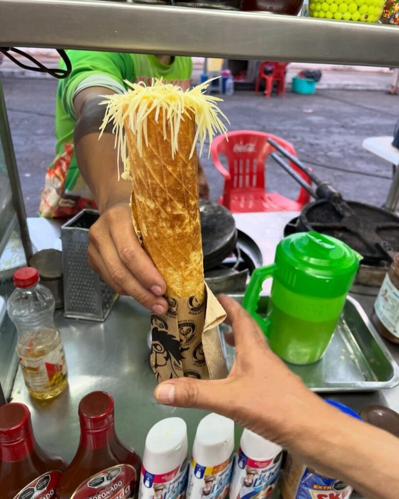 - マルケシータ (Marquesitas): チーズと甘いソースを巻いた、サクサクした食感のユカタン風クレープ(屋台スイーツの定番)。